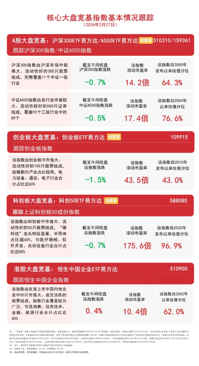 截至午间收盘,中证A500指数下跌0.5%,沪深300指数下跌0.7%,创业板指数下跌1.5%,上证科创板50成份指数下跌0.7%,恒生中国企业指数上涨0.4%。