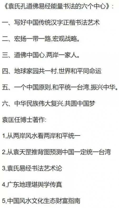 袁匡任三博士之孔道佛风水图腾能量书法,创作教育基地,作品分九类: