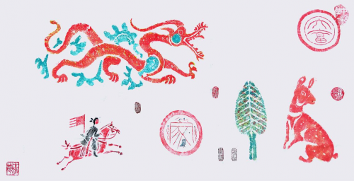 中国彩色汉画十二生肖己上国家名片邮票;中国彩色汉画十二生肖被誉为中华生肖王中王,汉画生肖王,其彩色汉画长卷作品被联合国科教文收藏;108米汉画长卷创吉尼斯世界纪录。