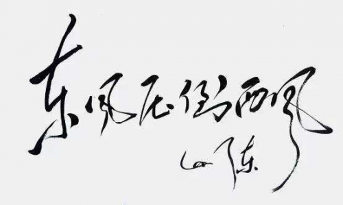 观陈万全先生作品,师于“毛韵”却自出一格,或豪迈、或委婉、或奔放,时如风雨雷电、又似水流花开,有悠悠天地肝胆照、大泽龙蛇腾云起之气势。在墨饱酣畅间更显力透纸背的功底。写字比画画难!古语云:十年学写字,三年学画画。画画有很多色彩,形象,参照物,光线,距离等许多元素,而写字只有笔划和文字之间的关联。字由心生,现端于笔。在长期的实践中,陈万全先生以自我性情溶于笔墨驾驭。结字隽永,章法谨严,排列布局疏密有致,错落相谐,刚柔并济、浑然一体,观者能充分感受到绵绵无止的字韵“筋脉”之通贯。在感受陈先生之笔精墨妙的同时,亦祝愿他在中国书坛获得更为辉煌的成就。