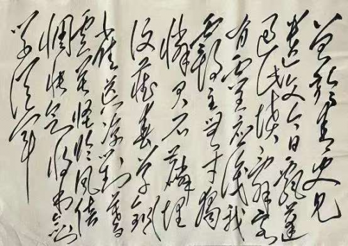 看不完的锦山秀水春花秋月,回味不尽的乡愁旅思离情别恨,书不尽的江山社稷家国情怀。山因书法增秀,石因书法生情,水因书法含韵。天地之间只有黑白两色最为分明,黑白两色,清淡素雅,质朴率真,又值得推敲,经过千年凝练与沉淀,愈久弥香。展纸挥毫,笔走蛟龙。直画如剑,曲笔似藤,点若危峰坠石,撇如兰叶拂风。纵横捭阖辟新径,酣畅淋漓写人生,是点线的巧妙组合,是生命的悲喜交融。他的书法作品,其风神洒荡,长波大撇,提顿起伏,一波三折,意韵十足,不减遒逸《兰亭》,直逼颜氏《祭侄》,堪称行书之精品。草书轻如鸿毛,龙飞凤