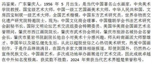 在这场文化盛宴中,冯鉴棠先生既是技艺精湛的艺术大家,更是深耕不辍的文化传承者。他以笔墨为桥,将中华民族传统文化的精髓悉心传递,让书画艺术的魅力浸润更多心灵,凭借卓越的艺术成就赢得海内外的瞩目与敬重。作为文化传播的使者,他让中国国粹在世界舞台绽放璀璨光彩,让东方美学的韵味跨越山海、直抵人心。