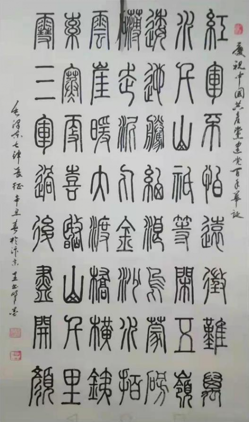 抗战颂,爱国心,强国梦,在 2015 纪念抗战胜利七 十周年阅兵庆典活动中被评为金奖,中国爱国书法艺术名家,作品收藏于海外首座中国人民抗日战争纪念 馆 ,2015年8 月在美国旧金山开馆。在艺术道路上 还将高歌远航! 为祖国书法艺术再立新功!