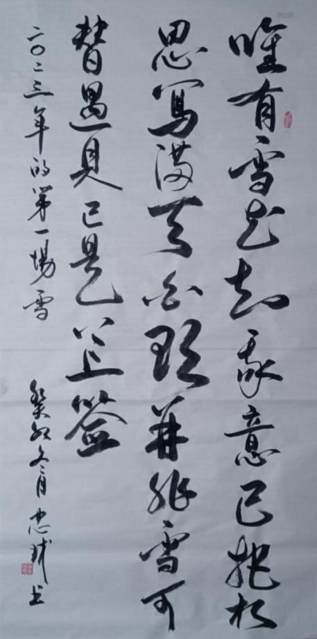 2023年入展中国国家画院美术馆主办的传薪•全国书画名家邀请展。入展雁栖湖《汉风唐韵 丝路万千》第一届国际文化节艺术名家作品展。入展中国楹联《水墨流觞蕴诗意 润雅如玉齐鲁风》新时代楹联书画名家邀请展。入展艺术之巅看中国·大美中华纽约时代广场海外展播。入展洛杉矶2023·大美中国·第八届中美书画名家作品展。入展中央美院廊坊馆《丝路艺术 共创繁荣》全国书画名家丝路艺术大展。入展北京民族文化宫展览馆江山如此多娇第四届当代艺术名家精品书画展。入展2023一带一路国际艺术巡展(匈牙利)。入展日本东京2023友爱和平中日书画名家邀请展。入展广州南北新象首届南北当代名家学术邀请展。应邀创作《中国梦》参加国家游泳中心(水立方)釉上星彩地面瓷绘集群展示项目并成功申创吉尼斯世界纪录。入选甲辰2024~唐忠球书法精品日历展。